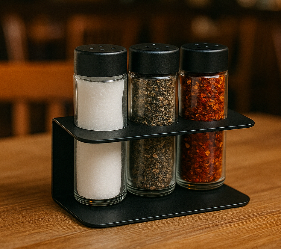 Metal Siyah Sac’dan özenle üretilmiş,lokanta cafe restaurant için tasarlanmış örnek BAHARATLIK